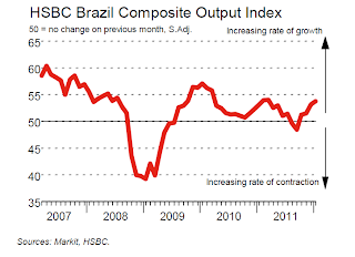 Among emerging markets the situation is very different, and Brazil and India are now both showing real signs of recovery. The recovery in manufacturing is significant, but the composite indexes (which cover both services and manufacturing) show a really strong surge in activity.