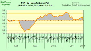 “The global manufacturing sector continued to record below trend growth at the start of 2012. At 51.2 in January, the JPMorgan Global Manufacturing PMI™ rose to a seven month high, but remained below its long-run average (51.8). Manufacturing output expanded for the second successive month in January, as new orders rose for the first time since last August”.