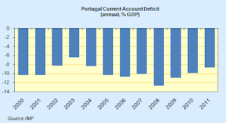 Anyone who has recently read my recent post on the true level of Spanish debt should not be the least surprised to find that similar issues exist in Portugal (for explanations of methodology see the Spanish post). As in the Spanish case the government provided guarantees for SOEs, so it has contingent liabilities and might be forced at some point to take over the debt. According to IMF estimates, explicit guarantees to Portuguese SOEs (including those outside general government accounts) represented anywhere between 10% and 15% of GDP in mid-2011.