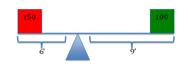 Imagine two people sitting on opposite ends of a 15-foot teeter-totter. The laws of physics dictate that the seesaw will balance if the product of the first mass (w1) and its distance (d1) from the fulcrum (i.e. the balancing point) is equal to the product of the other mass (w2) and its distance (d2) from the fulcrum. Thus, the physicist can show that the teeter-totter will be in balance when the fulcrum is placed 6 feet from the end holding a 150lb person and 9 feet from the end holding a 100lb person. Moreover, the laws of physics ensure that an imbalance will arise if the mass or the relative position of one of the people is changed.