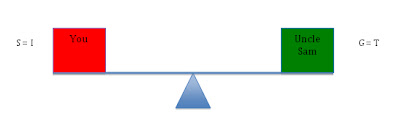 In the above scenario, the government is balancing its receipts (T) and expenditures (G), and you are balancing your savings and investment spending. There is no net gain/loss.