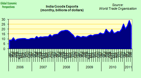 With a fiscal and a trade deficit it is hardly surprising that India’s current account position has been deteriorating in recent years. India reported a current account deficit equivalent to $9.7 Billion in the fourth quarter of 2010, down from $16.8 billion in the third quarter, and the situation may have even improved again during the first quarter given the strong export performance, but the IMF are still forecasting a small increase for 2011, up to 3.7% of GDP from 3.2% in 2010.