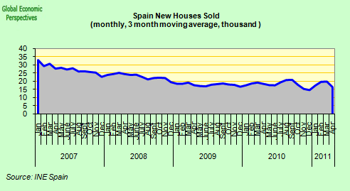 We would also need to know the level at which Spain’s unemployment were going to peak, and how long it will need to get back down to single digit levels. This is because one of the key factors which will also have a sure and certain impact on the level of bank loses is the level of unemployment, since it will influence mortgage default rates, and also serves as a proxy for many other economic indicators which also affect bank profitability. Monthly labour office signings fell back in April and May, due to the impact of seasonal industries like tourism and agriculture, but the seasonally adjusted figure continues to rise, and stood at 20.7% in April according to Eurostat data.