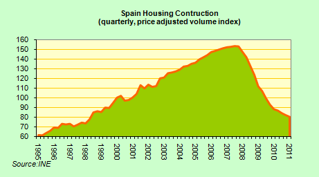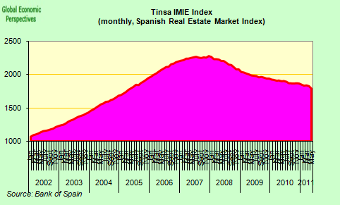 To be able to adequately answer the question we would need to know how far, and during how long Spanish property prices were likely to fall. Really this is a question to which no one has a real answer. Certainly we know that the index maintained by property valuers TINSA fell at an interannual rate of 5.88% in May, the fastest drop since December 2009, and that the market is showing all the signs of having a double dip, especially taking into account that total house sales hit a post crisis low of 24,100 in April, while new home sales fell to 11,500. In fact house prices on the TINSA reckoning have now fallen 21.5% since their December 2007 peak, and we have no real clear idea of how much further they have to fall.