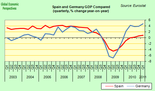 And as always, the proof of the matter is in the eating. If things were going well, and Spanish exports really were doing as well as German ones, how come one economy is booming and the other flirting constantly with recession? Enough of misleading casuistically arguments and more facing up to reality, please!