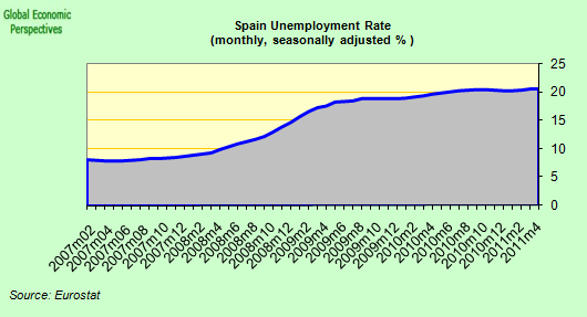 In addition there has been the recent rise of the “indignados” protest movement. With this movement gaining strength (as we have also recently seen in Greece) and becoming increasingly openly opposed to the Brussels inspired stability programme, the government’s margin for manoeuvre may become increasingly restricted, and especially if unemployment continues to rise and Spain drifts back towards recession. This movement is a new factor on the Spanish scene, and its presence needs to be taken very seriously.