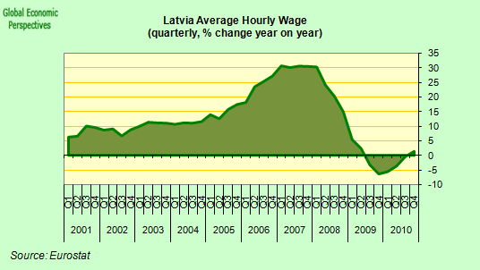 The point, I think, is this: if Latvia is not going to recover the competitiveness all agree it would gain through a normal devaluation process (for whatever reason) then it needs to do so via the procedure which has become known as “internal devaluation” (a procedure which in an earlier era was known by the name of “wage and price deflation”), and indeed this is what the Latvians have attempted to do.
