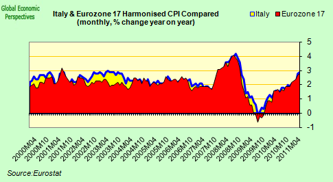 Despite the fact that the real leverage M Trichet now has over the Italian government is being exercised in order to obtain the constitutional change required for the balanced budget rule to be put in place, the severity of the fiscal tightening that Italy will now experience should not be taken lightly. In the first place something like 45 billion euros in new cuts will be implemented in 2012 and 2013, and this will be on top of the previously agreed package of 47.8 billion euros in cuts between now and 2014 agreed in the July budget.