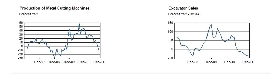 This also fits in with data showing a recent contraction in real-estate construction and anecdotal evidence suggesting an extremely weak project pipeline. More worrying, he found that machine production and machinery sales indicate a severe contraction in construction activity to come.