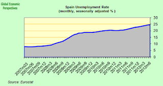 Anyway, as if to celebrate this uncanny anniversary the Spanish government has decided to take the bold step of officially requesting an EU loan to recapitalise the country’s banking system. In addition, part of the money will be used to set up some form of bad bank with the objective of cleaning up some of the toxic property and other assets off the bank balance sheets. Smart moves both of them. Pity the people responsible weren’t prepared to accept the need to do this five years ago, when unemployment was only running at 8%, and when the economy and Spain’s citizens were better placed to accept the kind of burdens that are now about to be imposed upon them.