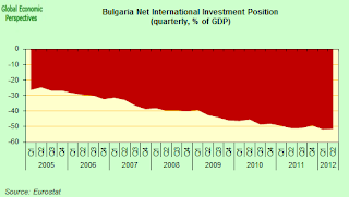 Bulgaria is also pretty much what the old DDR would look like if it hadn’t fused with Western Germany, namely it much more similar to Hungary than it is to Japan (in the sense I discussed in this post) as it has a significant negative balance on the net international investment position (though not as large as Hungary’s), which means as well as being quite poor it is totally unprepared for rapid population ageing (since the text book way to sustain pension and health benefits in a context of increasingly weaker headling GDP growth is normally thought to be to draw down on overseas assets).