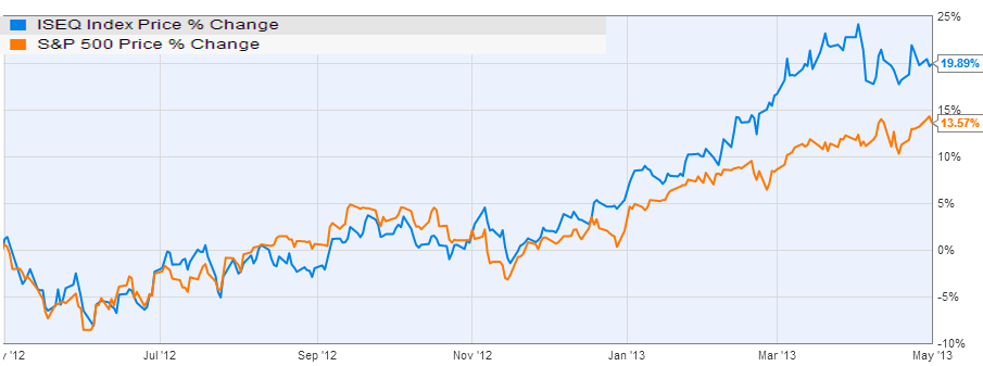 It seems that the markets are discounting many of the risks that have plagued Ireland’s economy in recent years. Ireland’s stock market has significantly outpaced the S&P500 in the last few months – ISEQ is up 20% over the past year.