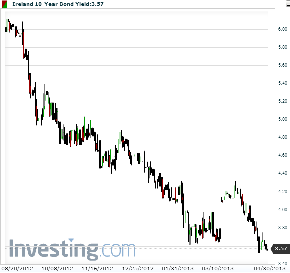 The nation’s sovereign bond yields, which are the lowest among the Eurozone “periphery” nations, are near multi-year lows. All is well in the Emerald Isle.