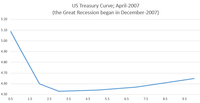Just to put things in perspective, this is what the US treasury curve looked like about 9 months prior to the start of the Great Recession.