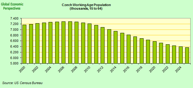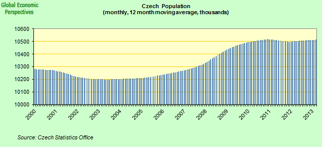 The Czech population has been virtually stationary over the last few years, but is now finally starting to contract.