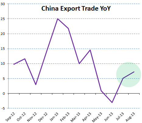 Bloomberg: – Overseas shipments rose 7.2 percent from a year earlier, the General Administration of Customs said in Beijing today. That compares with the 5.5 percent median estimate of 46 economists surveyed by Bloomberg News and July’s 5.1 percent gain. Imports rose a less-than-estimated 7 percent from a year earlier, leaving a trade surplus of more than $28 billion.