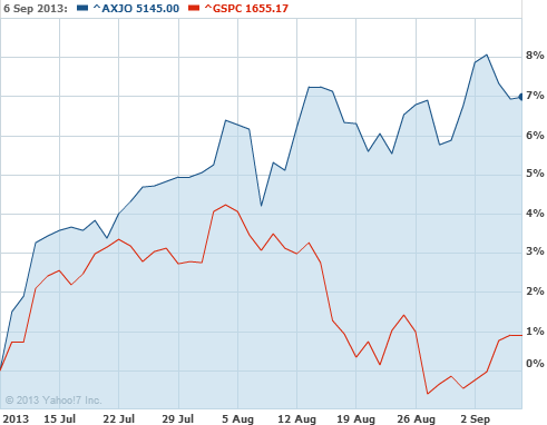 Perhaps the best indicator of China’s recent economic stability comes from outside the country. Australian markets are often viewed as a proxy to China, given the two nations’ close trade relationship. The Australian dollar, after touching a multi-year low of around 89 US cents a couple of times, is now back around 92. And the Australian stock market has been tremendously resilient lately, outperforming the S&P500 by 6% over the past two months.