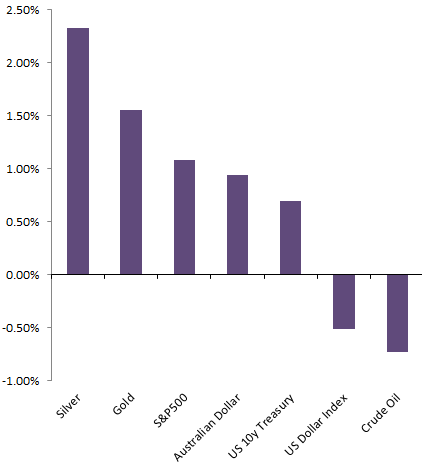 Of course the next obvious candidate is Janet Yellen, who is a highly accomplished economist but is thought to be even more dovish than Ben Bernanke. This took the markets by surprise, sending equities, precious metals, and “risk-on” currencies higher. Treasuries rallied as well on expectations of a more dovish Fed policy. Oil fell on a potential diplomatic solution for Syria.