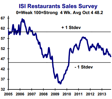 Moreover, the ISI Restaurants Sales Survey has been quite sluggish, though it’s too early to tell if this is related to poor consumer confidence.