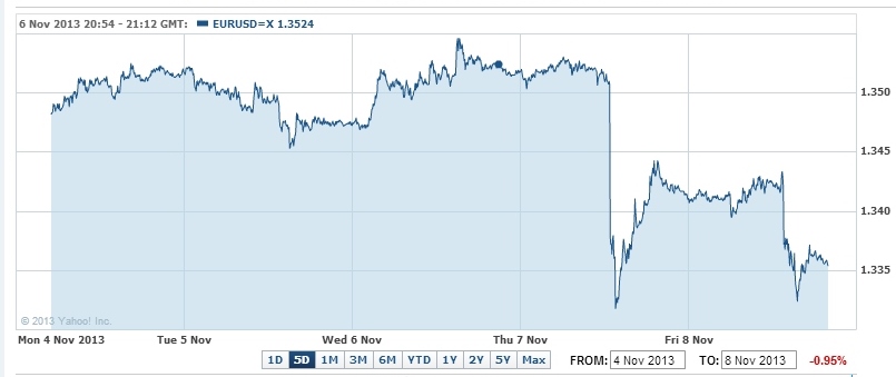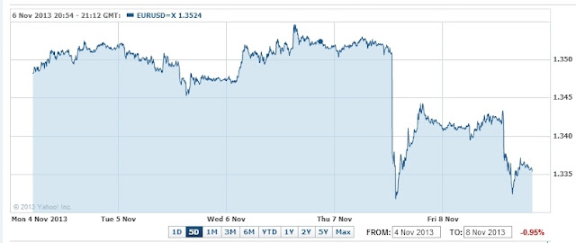 The problem is that cutting the refi rate pushed down the value of the Euro. It fell like a stone when the rate cut was announced, and although it rose a bit it didn’t return to its previous value.