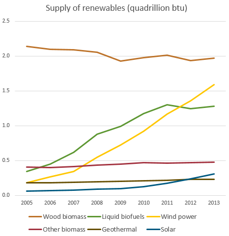 4. Within the renewable energy space the largest drivers of growth have been wind power and liquid biofuels (bioethanol and biodiesel). Growth in biofuels however has slowed in the last couple of years (in part due to higher corn prices).