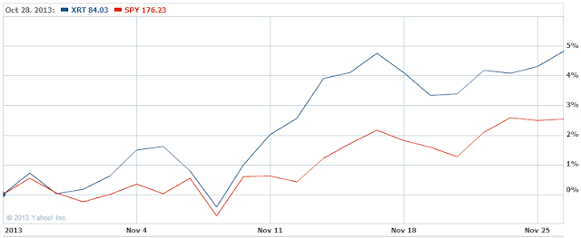 | XRT= retail ETF, SPY = S&P500 ETF |
