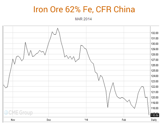 Steel, iron ore futures in China tanked on bloated (all-time high) inventories and apparent lending curbs by Chinese banks.