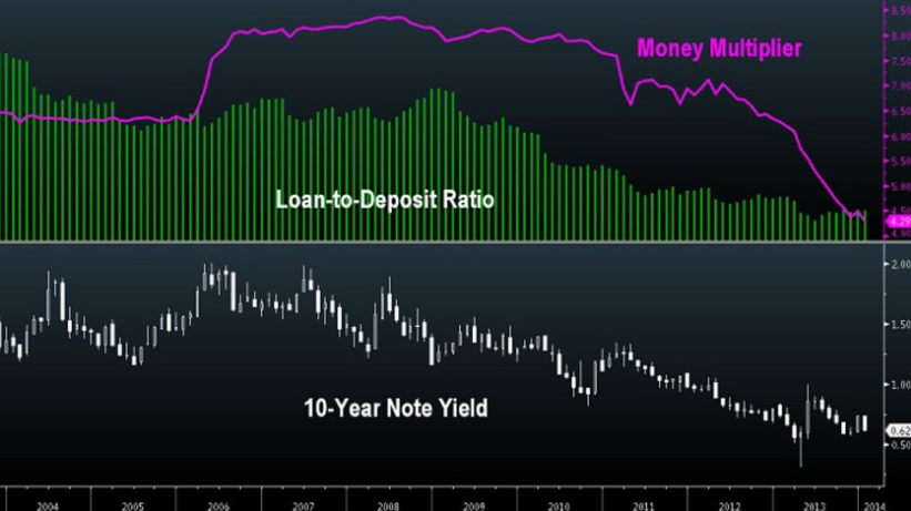 The loan to deposit ratio in Japan’s banking system – at around 70% – is one of the lowest on record and the money multiplier fell in January to the lowest since 2003, when data became available, signaling the amount of money in the economy dropped relative to funds provided by the BOJ. Naturally, according to your preferred theory explaining what the problem is in Japan you will read this data one way or the other, but personally I see it as a clear sign of the decline in demand for loans which you could expect to see in a country with an ever older population.