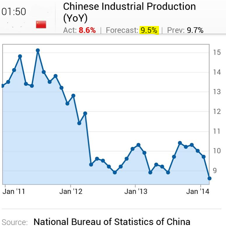 BW: – “The fairly dramatic slowdown is unusual in Chinese economic history of the last decade” and the figures were “shockingly weak,” said Dariusz Kowalczyk, senior economist and strategist at Credit Agricole CIB in Hong Kong. “It points to a major deceleration of momentum in the beginning of 2014,” wrote Kowalczyk in a research note.