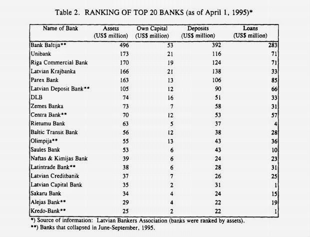 But it is just as well that the merger did not proceed. The Latvian Deposit Bank and Centra Bank also failed. In total, seven banks failed in the Latvian crisis: