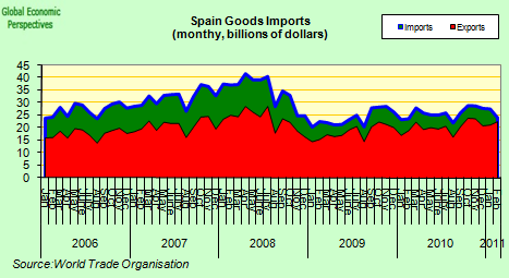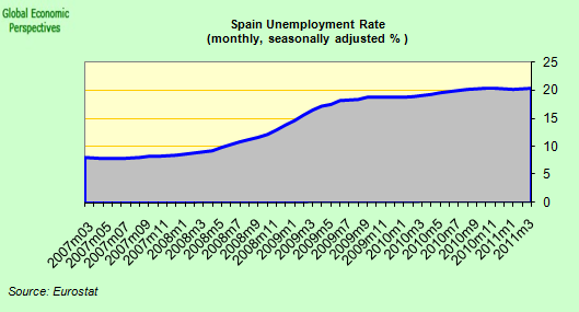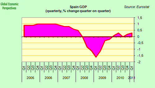 If this analysis of what has been going on in Greece is correct, then it can also help us understand the latest set of Spanish GDP numbers a bit better. According to the latest data, in the first quarter of this year Spain’s GDP rose by 0.3% over Q4 2010 and by 0.8% over the year earlier quarter. This surprised many analysts since the Bank of Spain has previously estimated growth to be around 0.2%, and a number of 0.1% was often anticipated.