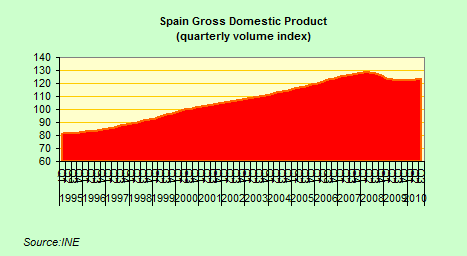 The problem with all this is that business cycles are not such straightforward beasts as they are often assumed to be, nor is it really clear how useful conventional business cycle theory really is during a structural (as opposed to cyclical) crisis like the one we are presently living through. Evidently in every economic expansion (or contraction) there is a structural and a cyclical component, and normally the former is less important than the latter in explaining short term movements in output, but during the present crisis this situation has been reversed in both the developed and the developing economies. Take the following charts illustrating recent growth patterns in the Spanish and Chinese economies, can anyone really spot the cyclical components, since I sure as hell can’t.