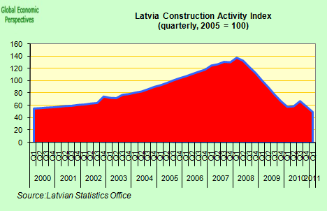 Now the Latvian economy is experiencing a sharp credit crunch, private sector credit which was increasing in 2007 at a rate of around 65% is now falling at a rate of 9% per annum.