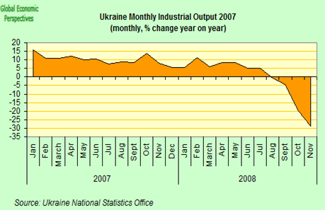 As is well known, Ukraine was one of the worst affected countries following the onset of the global financial crisis. Industrial output slid – great depression style – by more than 30% in a matter of months (the chart Krugman used was of course mine), largely due to a massive overdependence on steel, the price of and demand for which had fallen off a cliff.