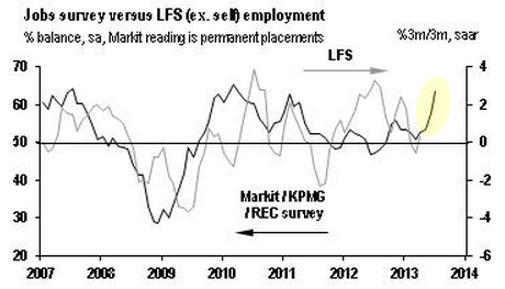 The chart below shows the spike in the KPMG/REC survey that is now also expected to show up in the Labor Force Survey (from the Office for National Statistics).