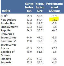 In particular, the markets reacted negatively to the “new orders” component of the ISM index. It registered the largest one-month decline in some 33 years.
