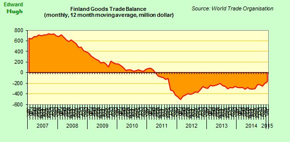 In fact Finland has transited from being a country with a significant goods trade surplus, to being one with a structural deficit.